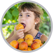 Naše sloupovité meruňky "Roxana“ plodí velké plody se žluto-oranžovou slupkou a červeným líčkem. Jsou šťavnaté a mají vynikající chuť.